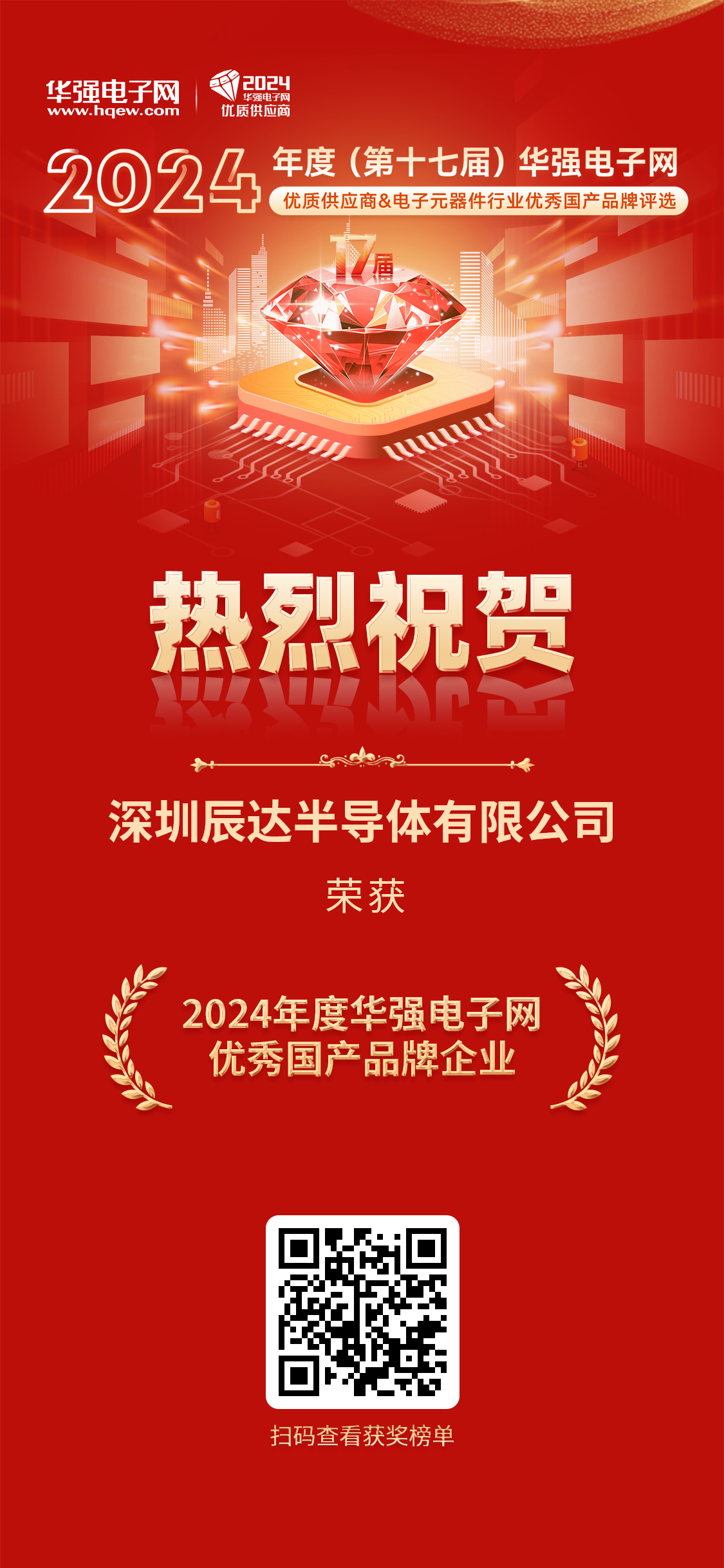 近日,深圳辰达半导体有限公司在激烈的市场竞争中脱颖而出,荣获“2024年度华强电子网优秀国产品牌企业”,这一荣誉不仅是对我们过往成绩的高度认可,更是激励我们继续前行的强劲动力。